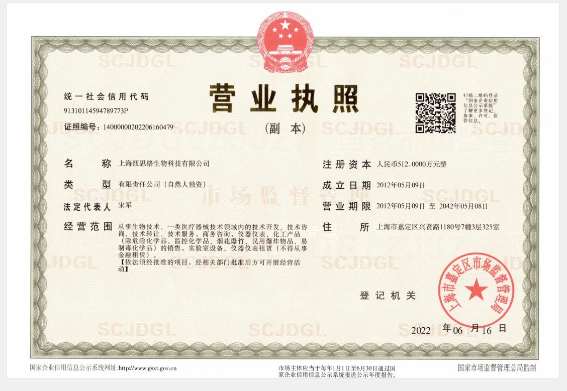 上海紐思格生物醫學科技有限公司 版權所有 免責聲明 滬ICP備2020037544號-1 營業執照